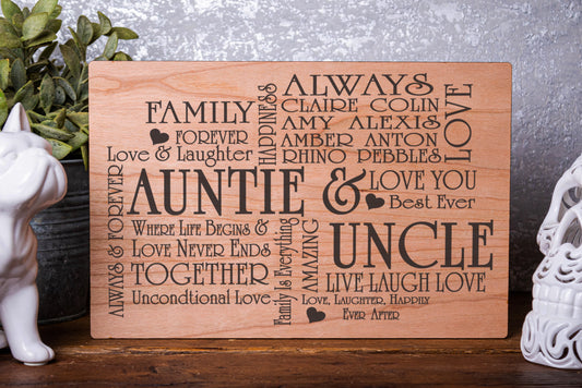Aunt & Uncle Cross Personalised Laser Engraved Wood Board