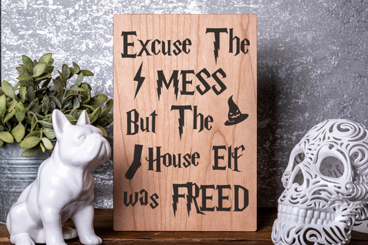 Excuse The Mess But The House Elf Was Freed Laser Engraved Wood Board