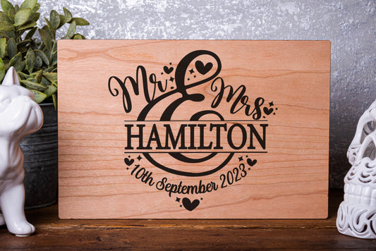 Mr & Mrs Wedding or Anniversary Personalised Laser Engraved Wood Board Landscape