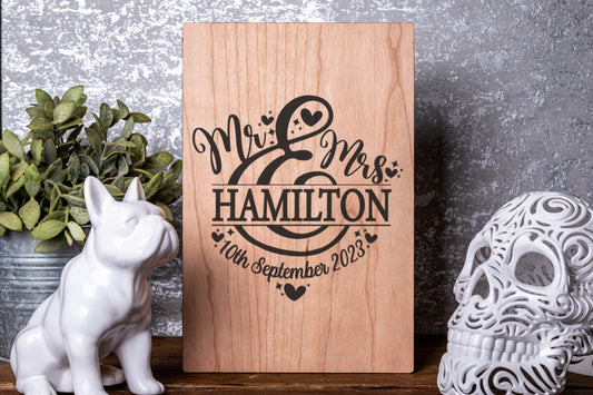 Mr & Mrs Wedding or Anniversary Personalised Laser Engraved Wood Board Portrait