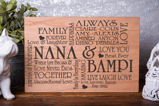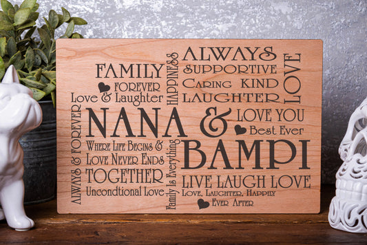 Nana & Bampi Personalised Cross Laser Engraved Wood Board