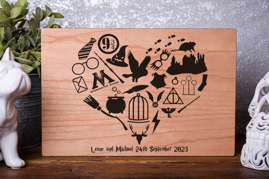 Harry Potter Style Wedding or Anniversary Heart Personalised Laser Engraved Wood Board